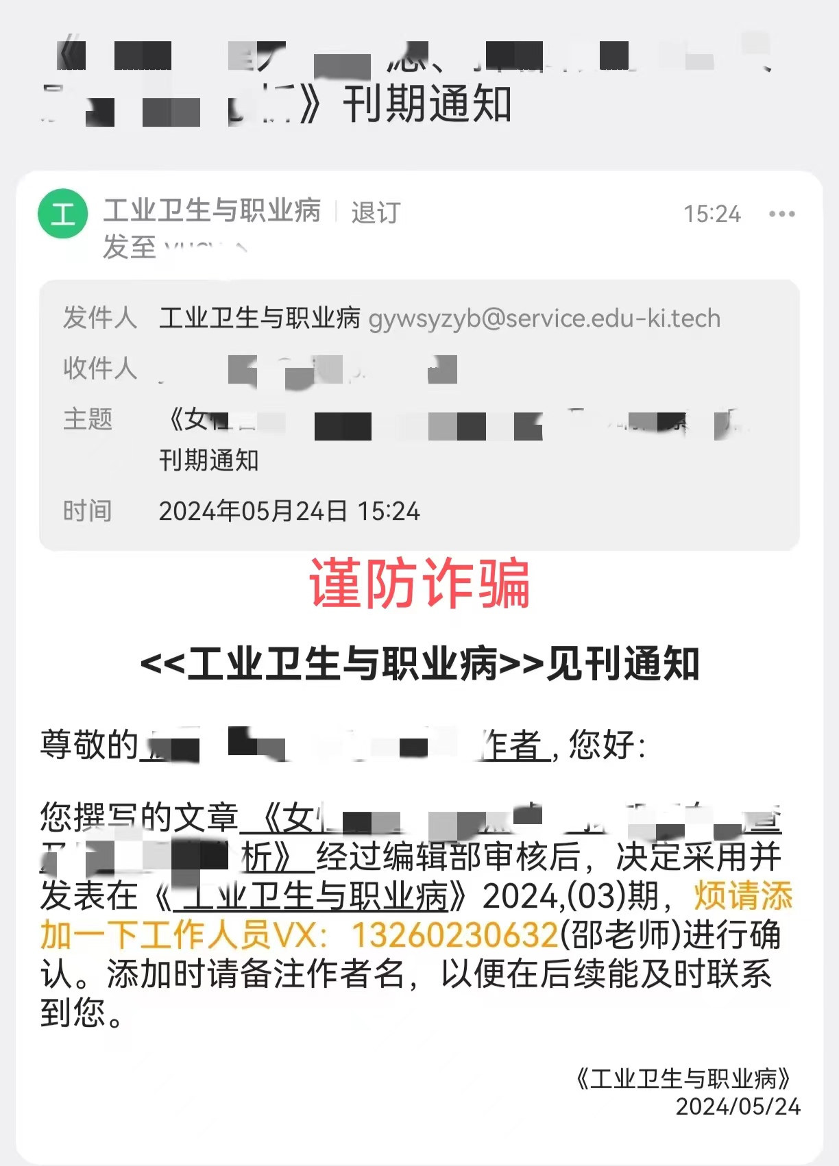 1.本刊编辑部任何人不会以私人名义添加作者微信,且无周编辑、唐编辑、李编辑、邵老师此人。